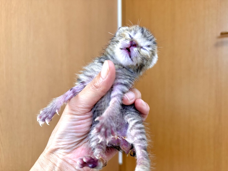 キジトラの子が飲みが悪いので投薬とカテーテル授乳。※最初に哺乳瓶を咥えさせてからカテーテルしてます。