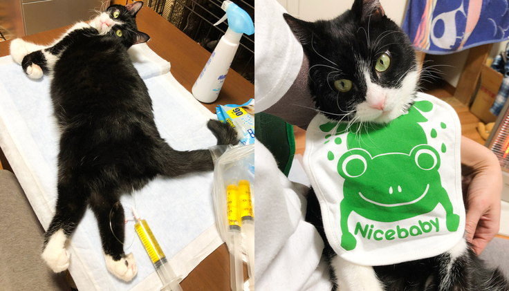 オレオくんが1歳を迎える頃には、自力で食べることもオシッコを出すこともできなくなりました。