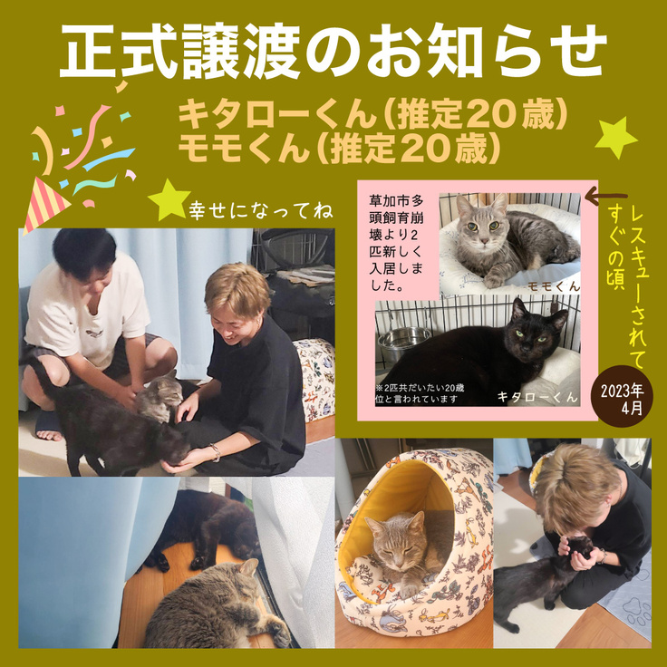 多頭飼育崩壊と20歳のハイシニア猫2匹が施設から卒業ができたお話です