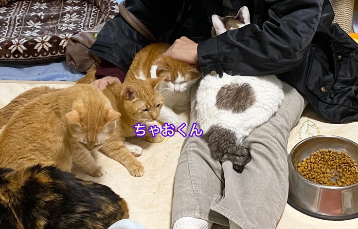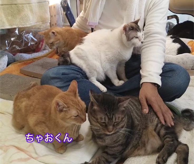 ずっと控えめでそっと甘えてくれたちゃおくん。仲間の猫には嫌がったり怒ったりする姿は1度も見たことがなく、10月に旅立ったトムくんとも一緒にご飯を食べたり寄り添ったりととても仲良くしていました。