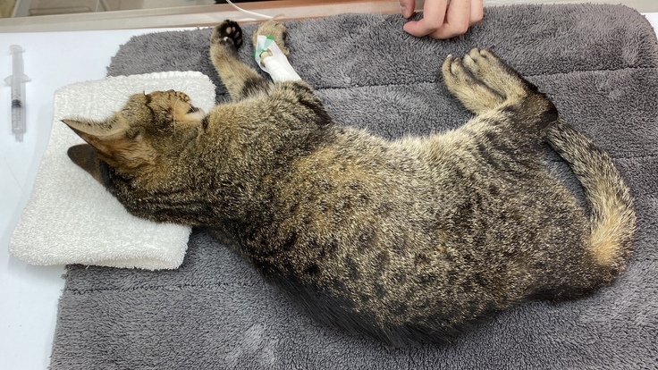 急ぎ、ハウスの子の協力で供血猫を連れて行き輸血の準備をしてもらいましたが、