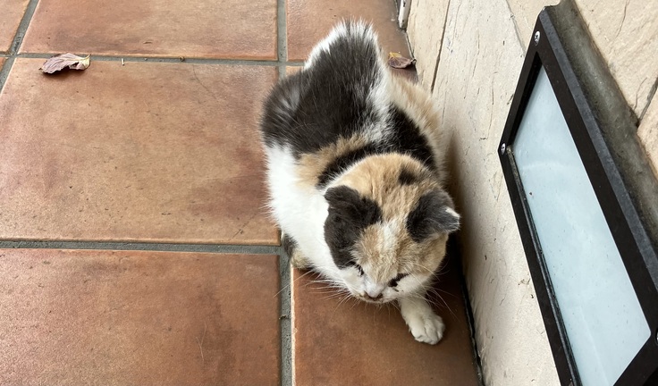 「見知らぬ猫が1匹うずくまっていて飼い猫みたいな猫です。」