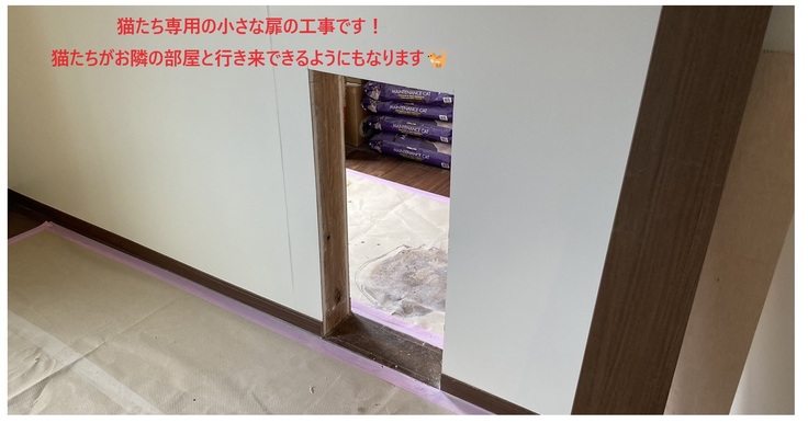 さらには、隣りの部屋に移動できる猫専用の小さな扉も設置しているところです。