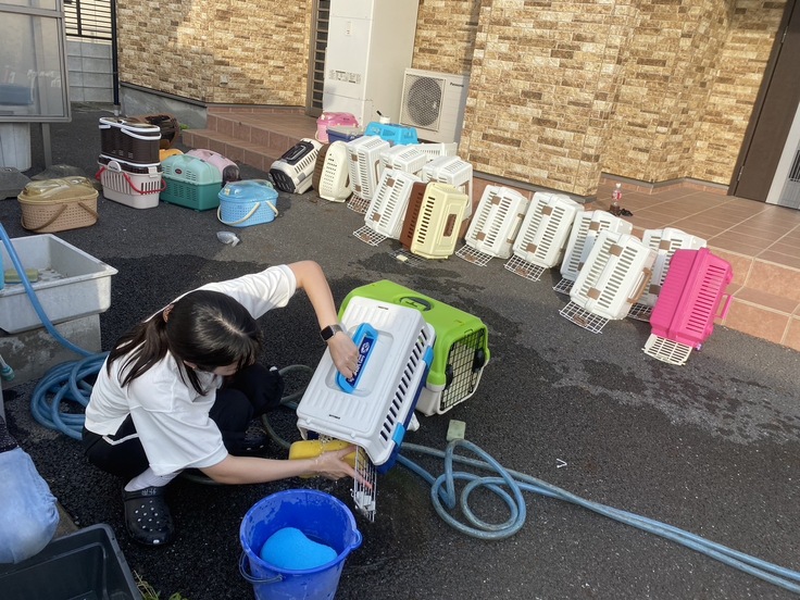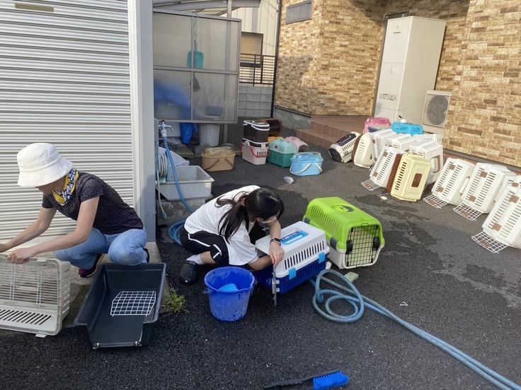 急ピッチに引越し準備に作業を進めています。先日猫たちを運ぶキャリーを洗いました。