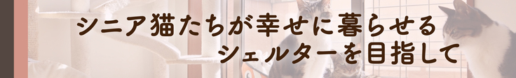 そのためクラウドファンディングを通じて皆さまからご支援をいただき、シニア猫や傷病猫に対してのケアを適正に継続し、いのちを守る最後の砦としてシェルターを運営していきたいのです。
