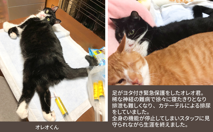 また、交通事故等で受傷し緊急保護され、治療が必要とされた猫の場合には、その高額な治療費について、SNS等で個別支援をお願いしてまいりました。さらに、飼い主様の事情により保護依頼があった場合には、飼育費をお支払いいただけるようにお願いしています。