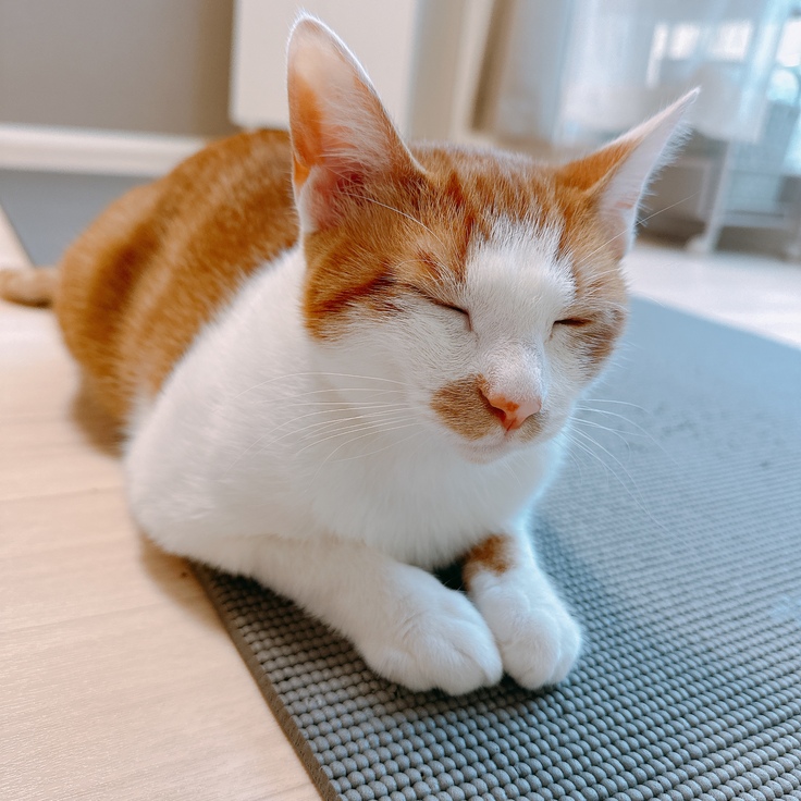 病院前にヨガマットの上でくつろいでしまったひめちゃんを載せさせていただきます☺️