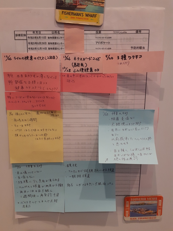 見づらいですが日々の気になったこと、変わっていく変化、好みなど付箋紙で追加しています。