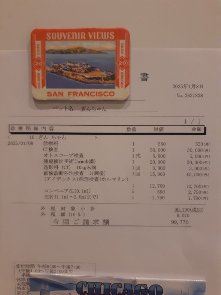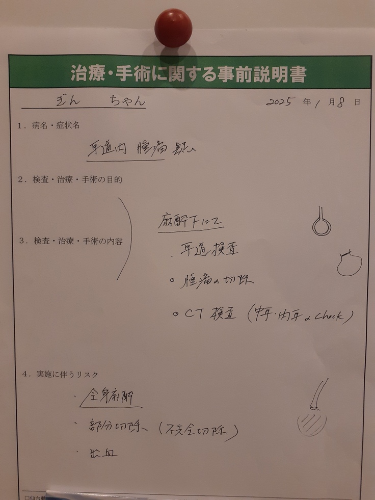 【ぎん君】は8日に予定通りCTと肉腫の切除の手術になりました。