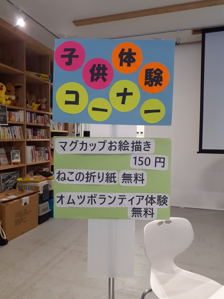 大学生はチラシ配布などをお手伝いいただき、小学生ボランティアは折り紙やぬり絵のブースにて活躍いただきました。
