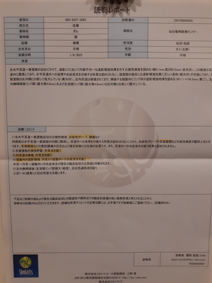 そのあと、11日に読影レポートにて新たに分かったことがありますのでこちらにご報告させていただきます。