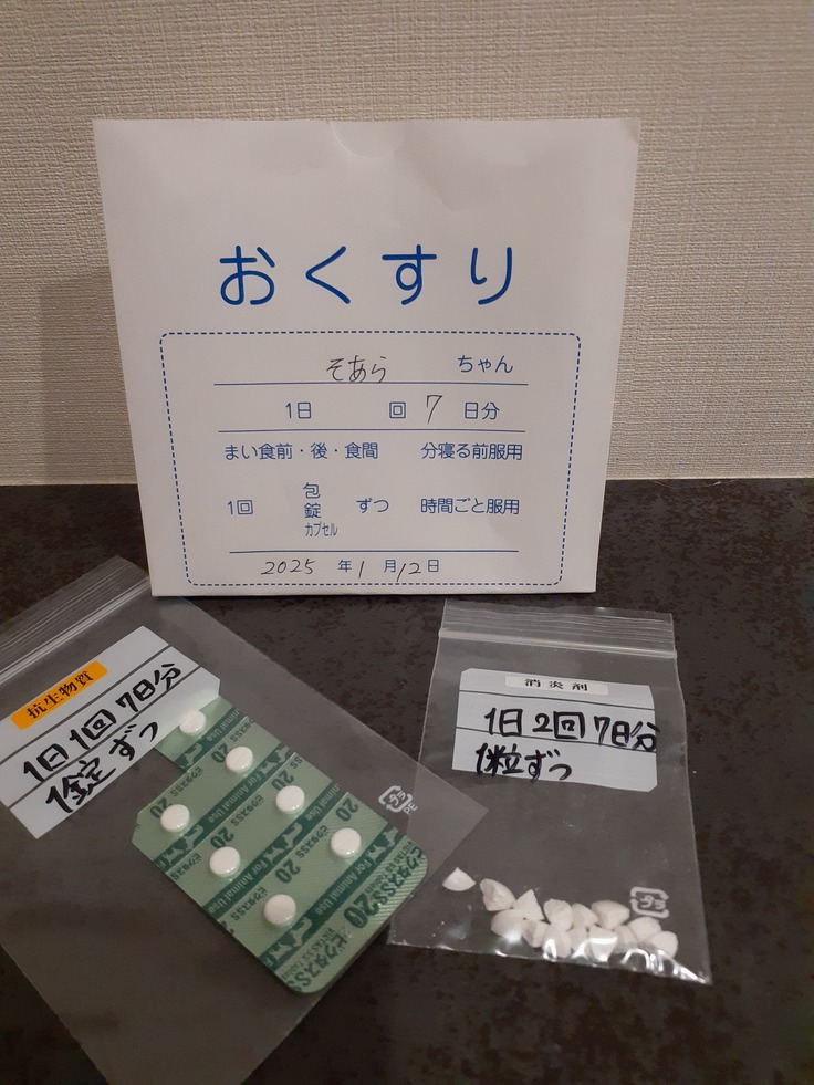 前回いただいた抗生剤は効いてないとの判断で違う抗生剤と止血剤をいただきました。