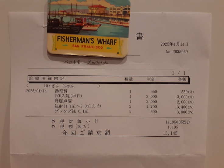 12日の通院は3匹。前後しますがこちら12日の診療明細書です