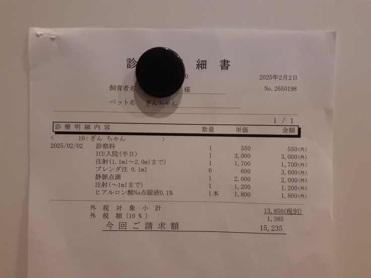 【ぎんちゃん】2月1日~3日まで日帰り入院をしていました。