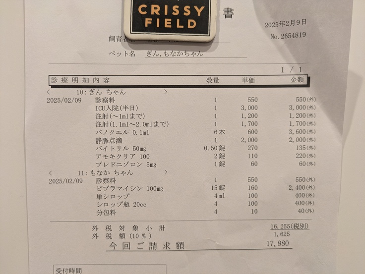 まずは[ぎんちゃん]1日おきの半日入院。昨日で最後となりました。
