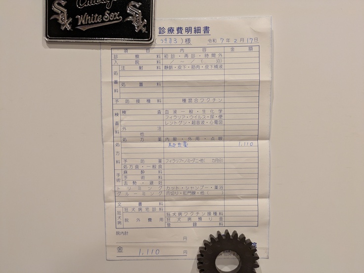 まずは月曜日、[つきまろ君]先週土曜日に続いての駆虫薬投与の為受診しました。