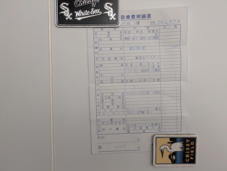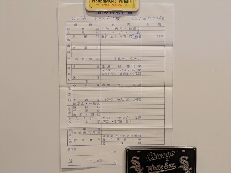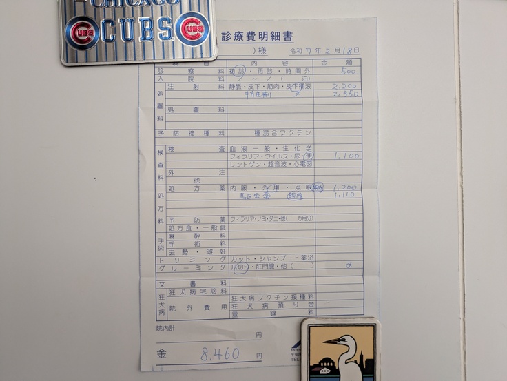 本日は、今週月曜日〜木曜日までの5匹の医療についてご報告させていただきます。
