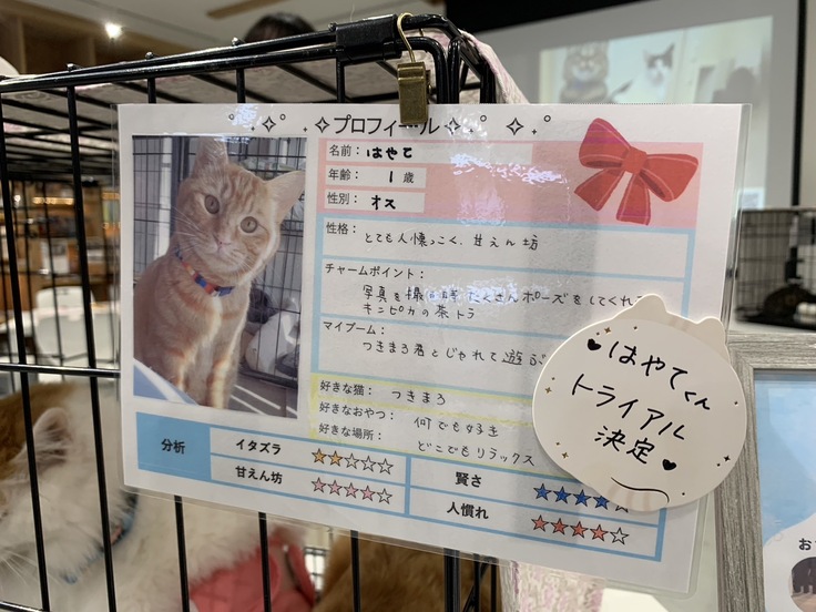 普段の様子を見ていただいて不安なく、納得してトライアルに進んで欲しいという当初からの「人も猫も幸せに」を目指す一歩となる個別お見合いにお話を進められたことが本当に良かったなぁと思います。