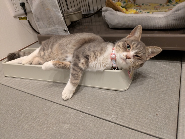 それを踏まえ発情の様子を見て手術をしない選択も検討、また発情があると確認したら、子宮、卵巣を全摘ではなく、卵巣のみの摘出を検討しようと思っていましたが、10日にシェルター訪問してくださった方が[かぐらちゃん]のトライアルをしてくださるとお申し出がありましたのでお願いすることになりました。