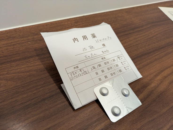 皮膚炎とのことで口にも皮膚にも効くという抗生剤を処方していただきました。
