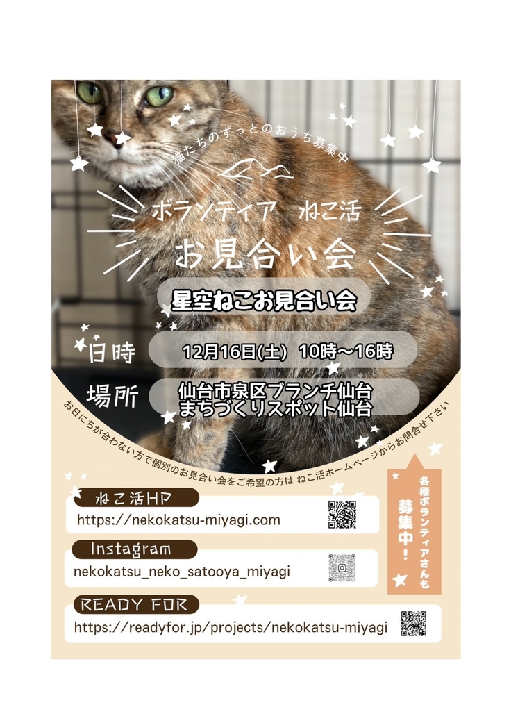 有名ではないねこ活なので広報活動も含めたイベントとして今後活動のSTEP UPの起爆剤となれればいいなと思っています。