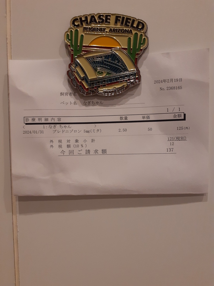 1日、【くぅ君】の手術日に【凪君】の投薬をいただきに行ったのですが電気系等の故障により医療費を支払えなかったので本日お支払いをしてきました。