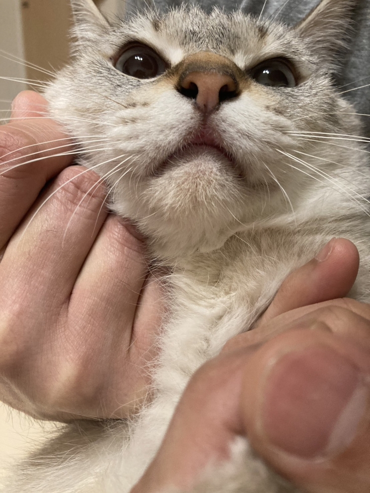 ですが腫瘍は腫瘍。今までの威嚇の状態だけでも里親さんの手は挙がらなかったこと、腫瘍の悪化の時期も分からないこと、そしてそもそも腫瘍があって今のままでは里親さんにはつなげられないだろうという考えからねこ活を卒業し、私の飼い猫として終生幸せに暮らさせるのがいいのではないのかと今の段階では考えています。