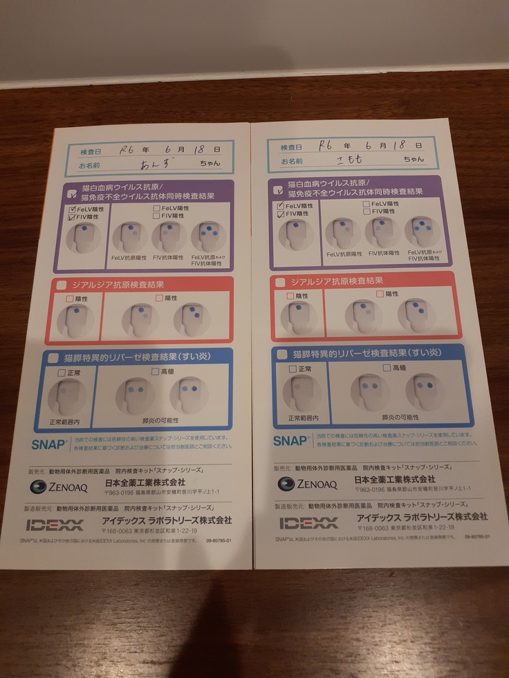 2匹とも糞便をとってもらい再度検査をしていただきました。