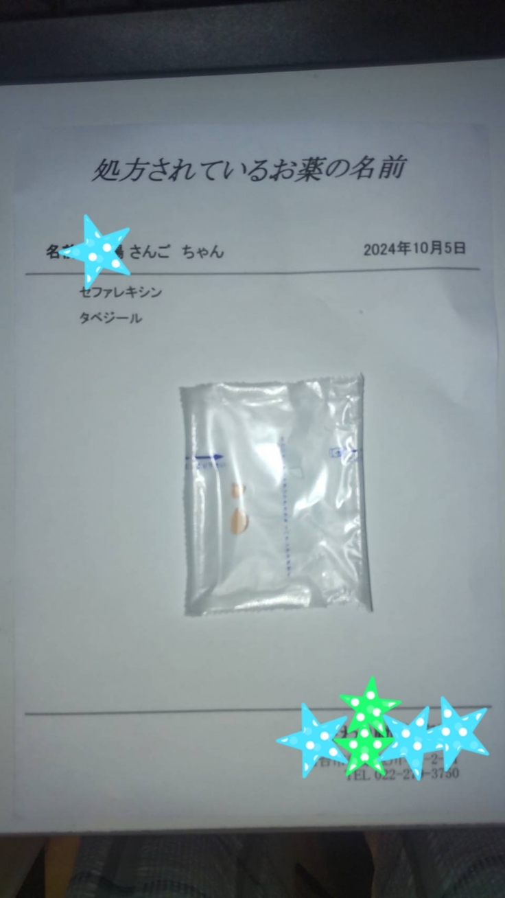 病院を変えても結局のところは分からず耳の掃除、投薬2種類をいただいてきたようです。