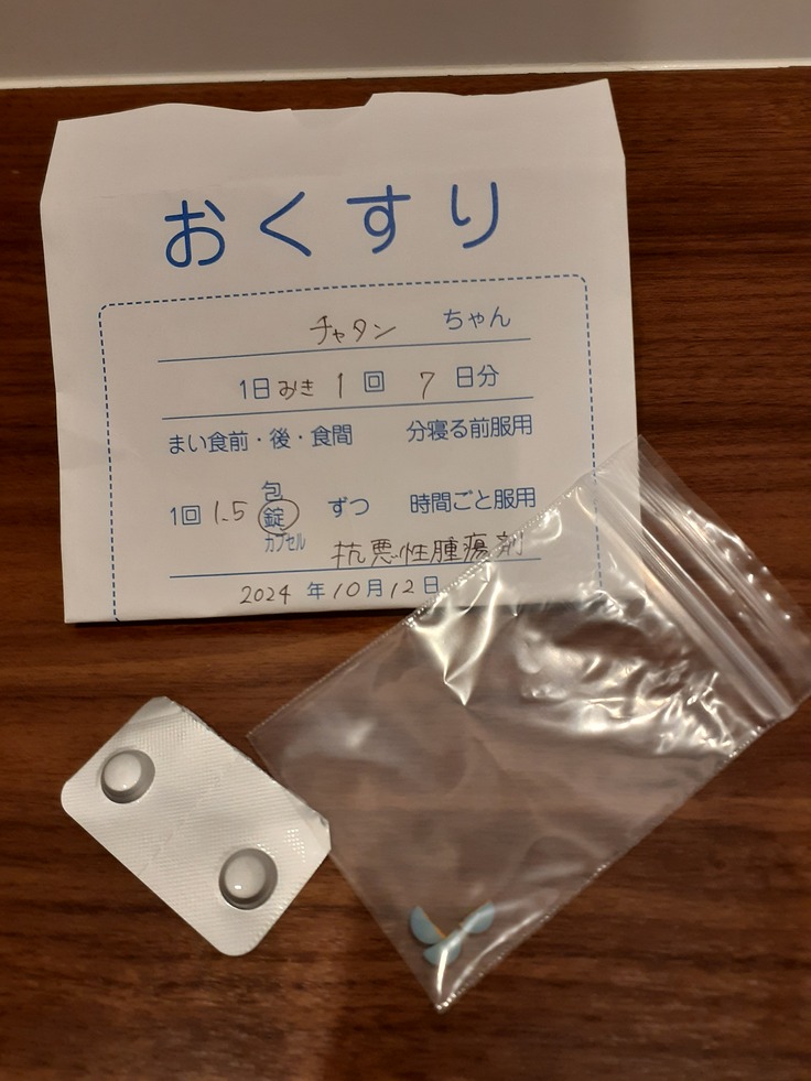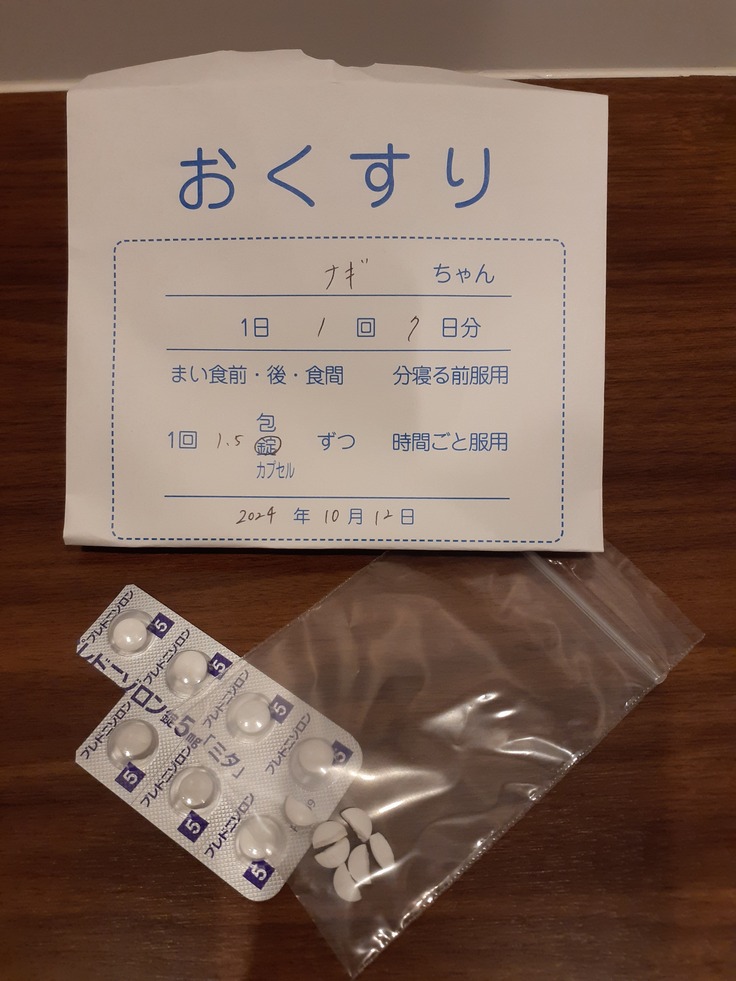 抗がん剤ということで、薬は直接触らないこと、そして排尿排便はすぐに取ることに注意してくださいとのことでしたのでしばらくケージにて隔離投薬としていきます。