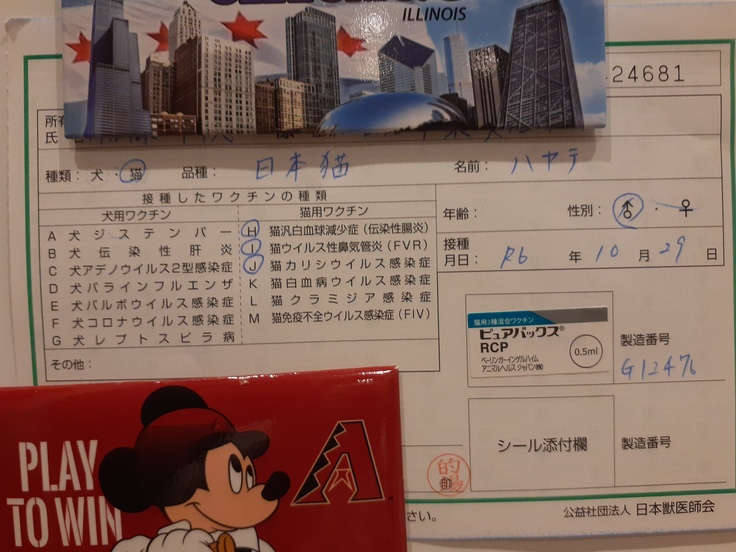 次回3週間後に検便、2回目の予防接種をしてきます。
