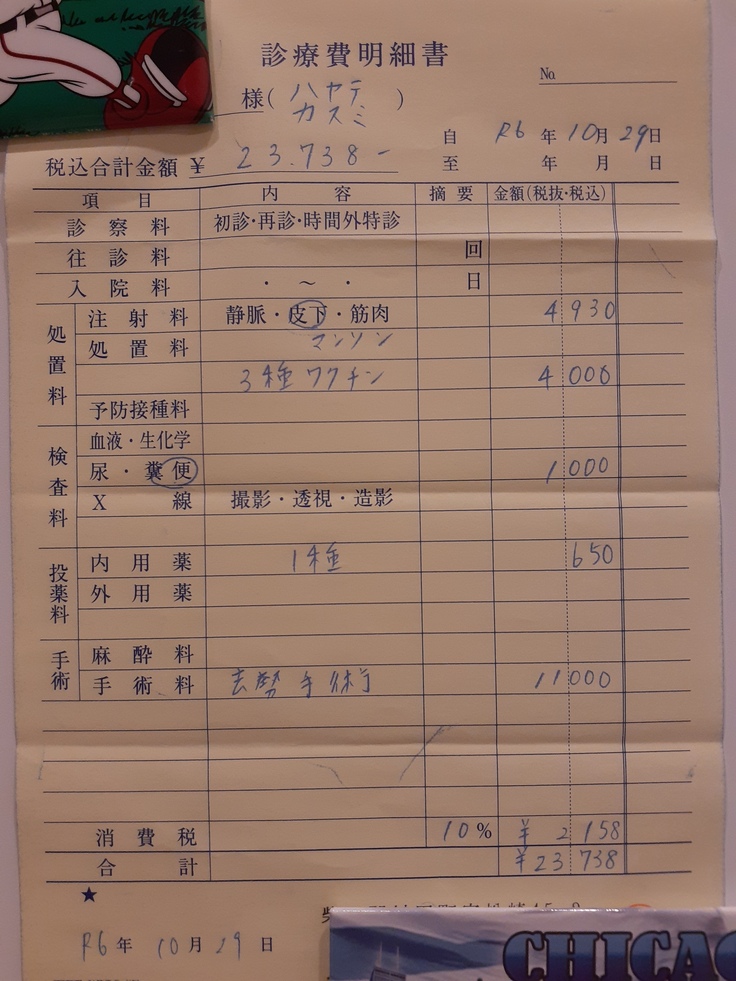 【くりまんじゅう君】【はやて君】【かすみ君】の医療