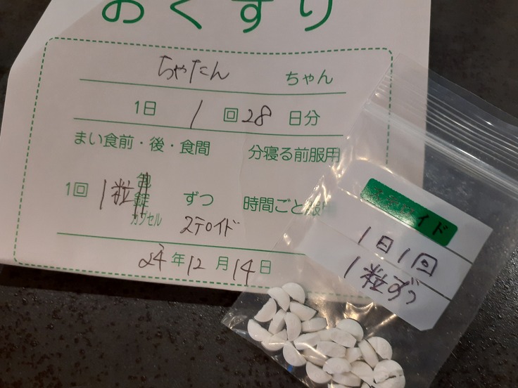 今回は抗生剤は処方なしでステロイドのみ2分の1を毎日の処方のみになりました。