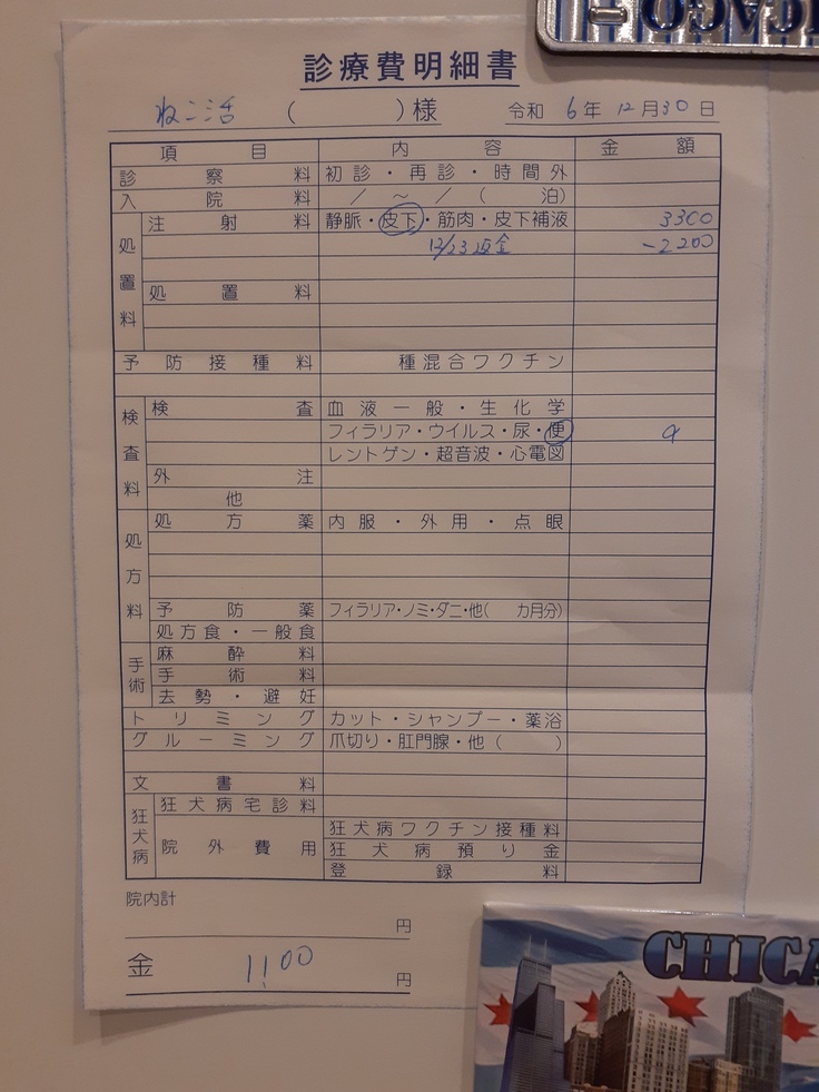 すみません。診療明細書がどこかに紛れてしまい、領収書になります。