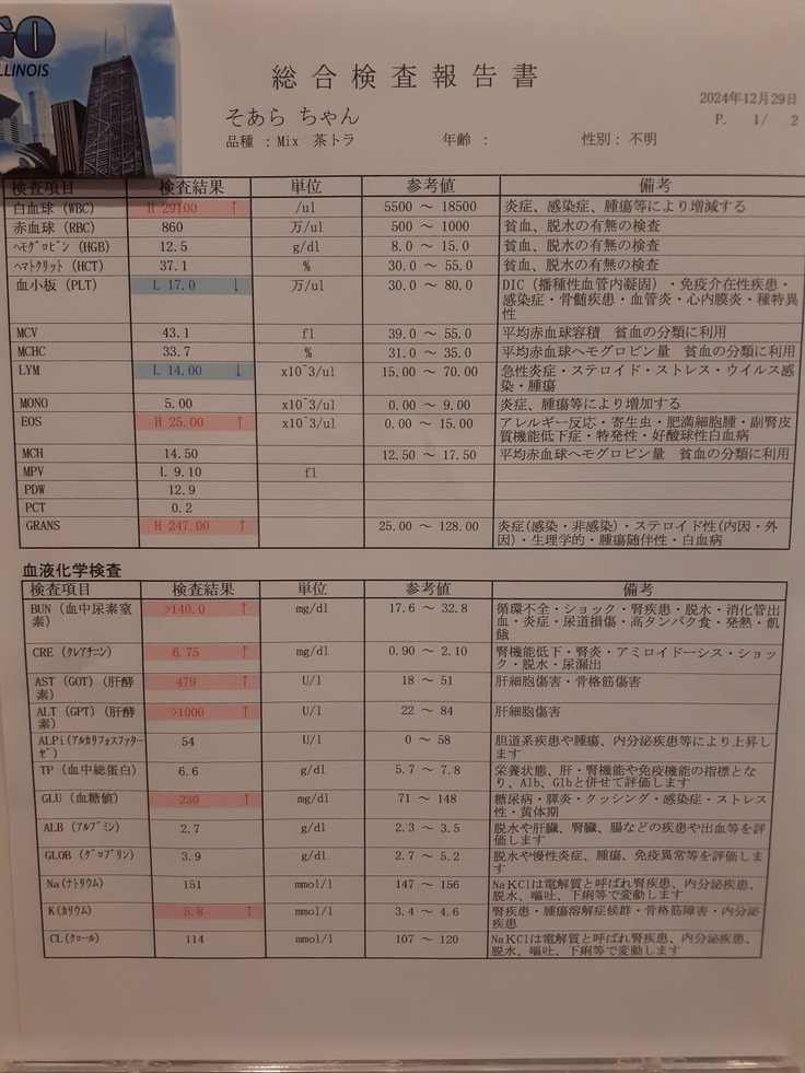 最後に【そあら君】尿道閉塞のため酸素室に29日入院しました。