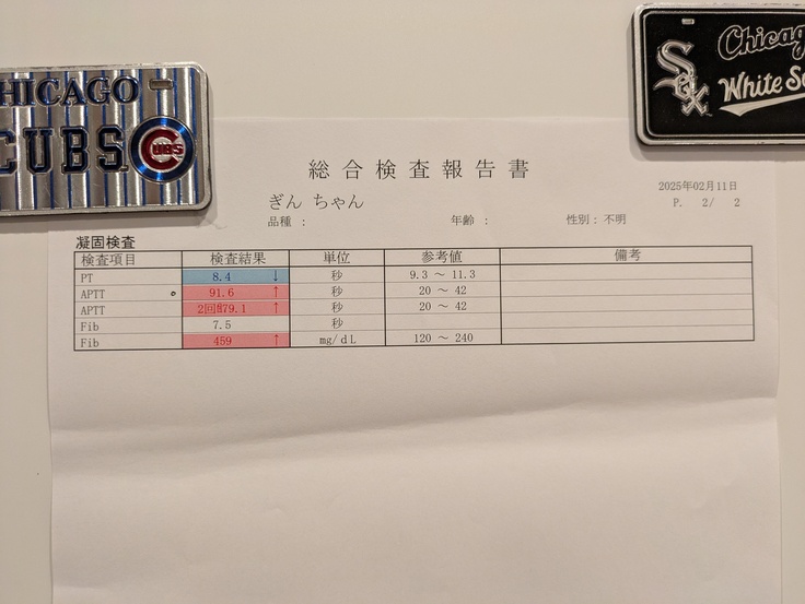 今後は点滴も、投薬も抗生剤だけを使って様子を見て、凝固検査を再度して原因が解消されたら手術の日程をまた組み込むということになりました。