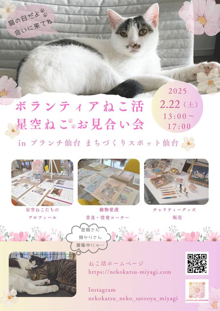 22日のブランチ仙台での譲渡会は10匹参加を予定しており、参加予定だった[りりちゃん]は本日個別お見合いにて来月初旬にはなりますがトライアル開始が決定になりましたのでメンバーは変わりますことここでご報告させていただきます。