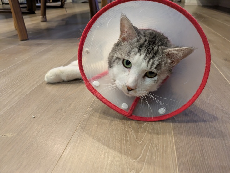譲渡会があったので私も準備しながらギリギリまで待っていましたが先生の診療は結局呼ばれなかったようで、看護師さんにカテーテルを少し動かしてもらい少し尿が出たということで戻ってもらい、譲渡会に出発しました。