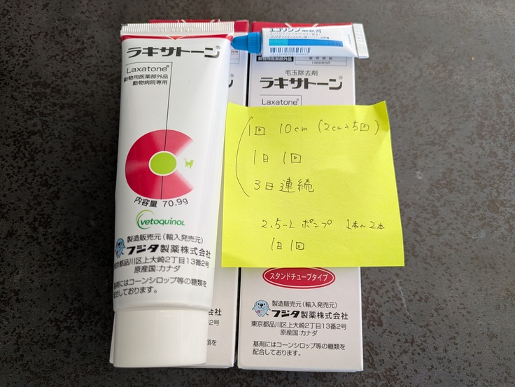 ラキサトーンは今、みんにゃ毛玉を吐きたくて結構吐いてますので便から出せるようにいただいてきました。
