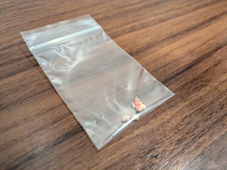 ただ、抜歯の時に顎の骨が薄く弱かった為、抜歯をしては顎を駄目にすると判断、根までは抜かずギリギリのところで折って、歯茎を被せるという感じになったそうです。
