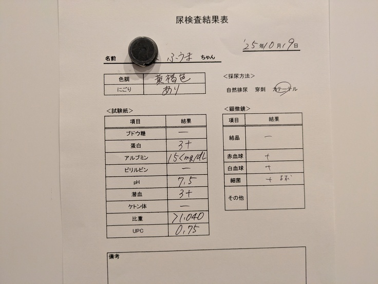 尿検査では球菌が見つかり抗生剤の処方となりました。