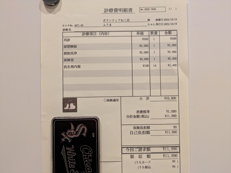 朝もそのとおりで膀胱炎で血餅が詰まったなと思い一緒に受診。