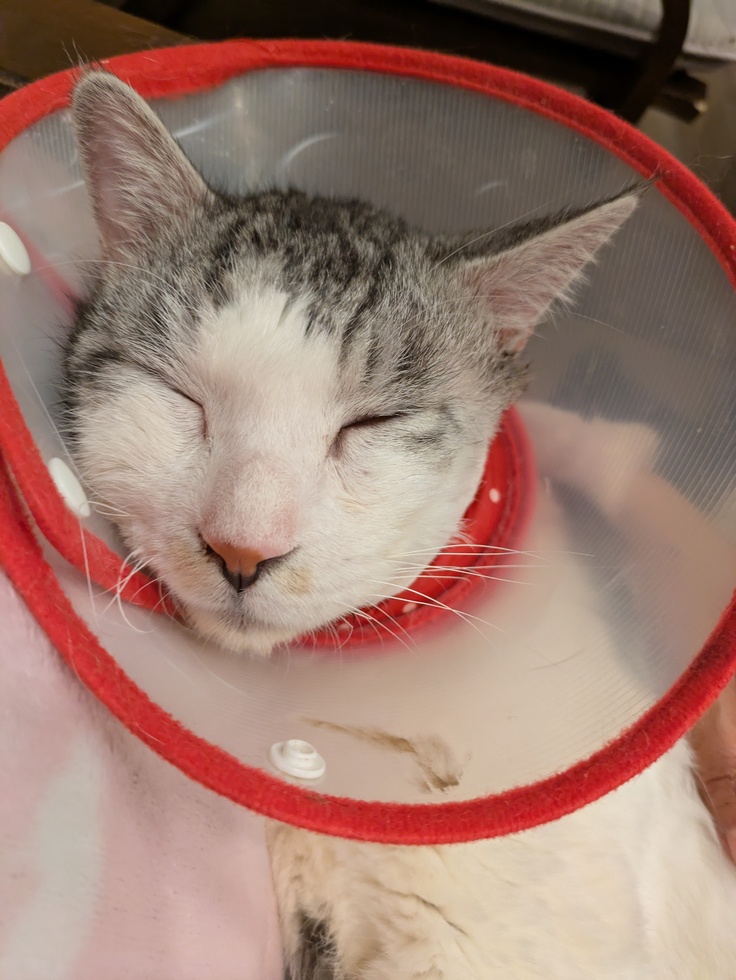 [ぎんちゃん]は手術の抜糸の日でした。まだエリザベスカラーは必要とのこと。