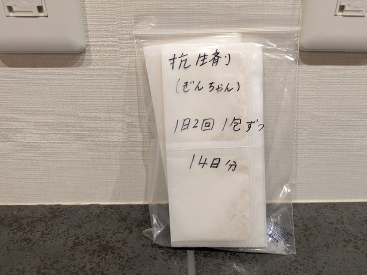 ステロイドとコンベニア注射をしていただき2週間継続の投薬を処方、輸液をいただいてきてくれました。