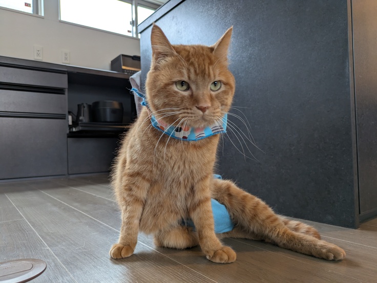 シェルターに戻ってからも自己排尿ができており元気に過ごしています。