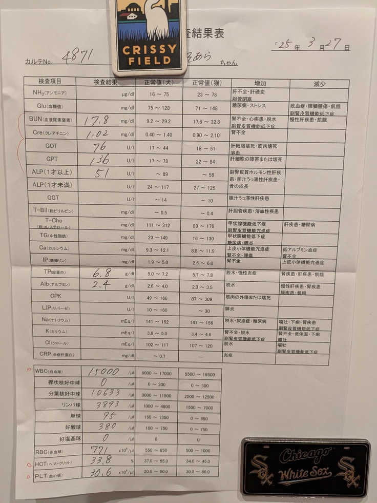 血液検査も問題なかったことを説明いただき退院して、排尿に問題があったらご連絡ください。ということと、オムツなので排便後など清潔に保つことをご説明いただき退院となりました。