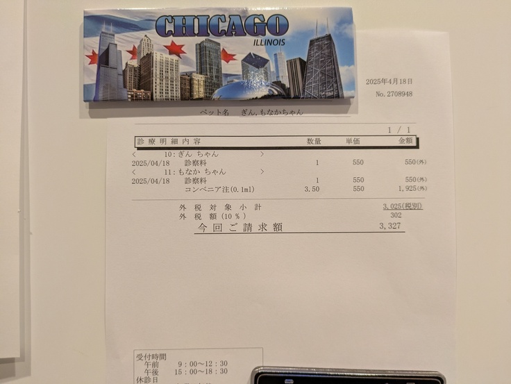 同日18日別の動物病院にて[ぎんちゃん]と[もなか君]受診しました。