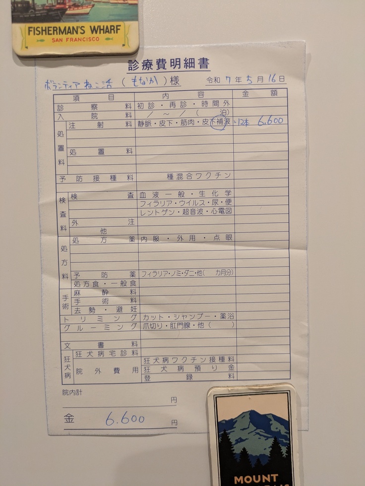 今後も難治性の口内炎が改善していくことを願いながら投薬、注射を継続、腎臓に対しては点滴をしていくのと変わらず腎臓薬を毎日2回を継続になります。