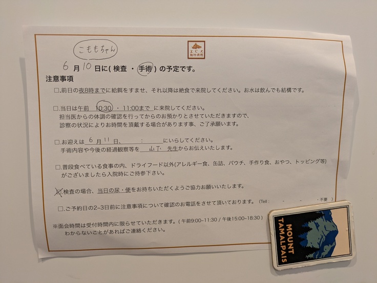 手術は10日、こちらも一泊二日です。