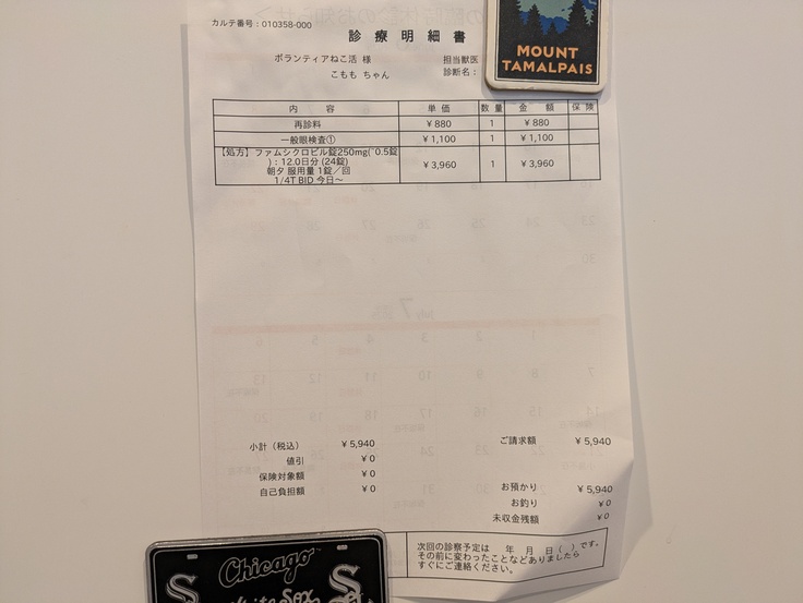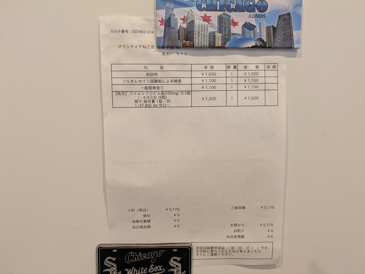 右目は検査角膜黒色壊死症が見られるとのこと、そして左目は見た目通り瞬膜で覆われていることが検査で分かりました。
